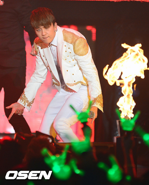 비에이피의 영재가 화려한 무대를 선보이고 있다.