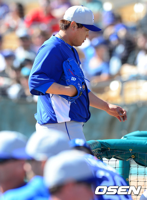 3회말 공수교대때 첫 등판서 무실점 기록한 류현진이 더그아웃으로 들어가고 있다./soul1014@osen.co.kr