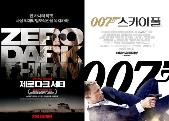 영화 '제로 다크 서티'와 '007스카이폴'이 아카데미 시상식에서 음향편집상을 수상하는 영예를 안았다.