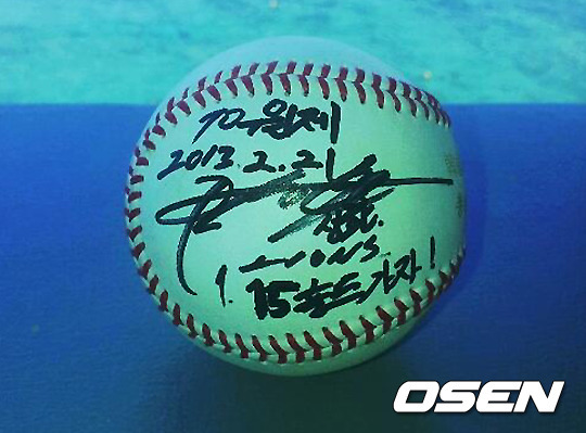 사연은 이렇다. 일본 오키나와 2차 캠프에 참가 중인 최원제는 21일 전훈 숙소 룸메이트인 윤성환(32, 투수)에게서 특별한 사인볼을 받았다. 윤성환은 공인구에 자신의 사인과 함께 '15홀드 가자!'는 응원 메시지를 남겼다. "우찬이형도 성환이형에게 사인볼을 받은 뒤 데뷔 첫 10승을 달성했다"는 게 최원제의 설명.