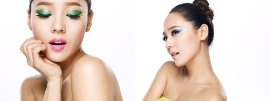 '겟잇뷰티' 측이 26일 공개한 포스터에서 유진은 브이(V)라인 얼굴형과 매끈한 목선, 쇄골 라인으로 여성미를 과시했다. 특히 유진은 초록색, 파란색 네온 컬러의 아이 메이크업과 상큼한 분홍색 립 컬러로 봄 기운을 물씬 자아냈다.