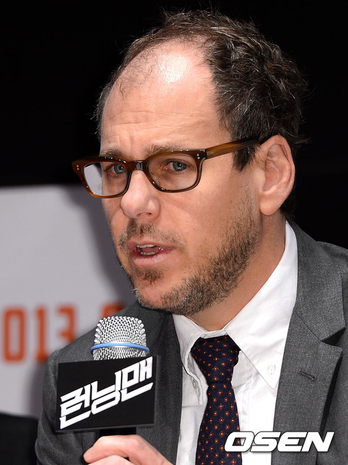 26일 오전 서울 자양동 롯데시네마 건대입구에서 열린 영화 '런닝맨'(감독 조동오) 프레스데이에서 샌포드 패니치 폭스 인터내셔널 프로덕션 대표가 취재진의 질문에 답을 하고 있다.