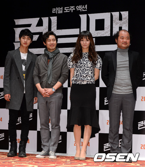 26일 오전 서울 자양동 롯데시네마 건대입구에서 열린 영화 '런닝맨'(감독 조동오) 프레스데이에서 배우 이민호, 신하균, 조은지, 김상호가 포토타임을 갖고 있다.