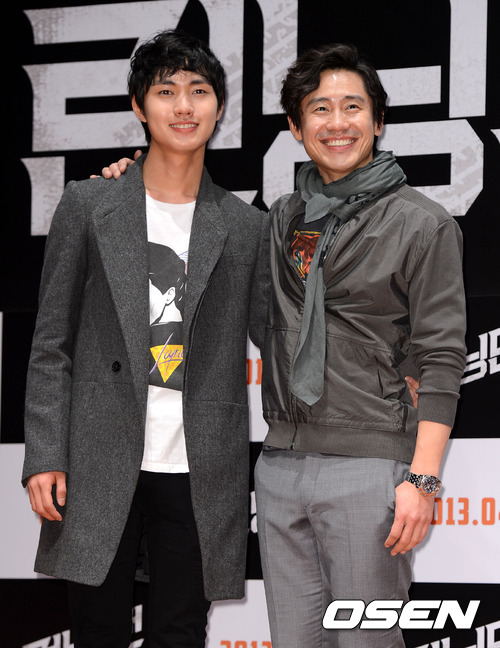 26일 오전 서울 자양동 롯데시네마 건대입구에서 열린 영화 '런닝맨'(감독 조동오) 프레스데이에서 배우 이민호, 신하균가 포토타임을 갖고 있다.