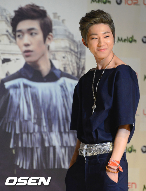26일 오후 서울 합정동 메세나폴리스 인터파크 공연장에서 열린 '틴탑 컴백 기자회견&쇼케이스에서 틴탑멤버 창조가 포토타임을 갖고 있다.