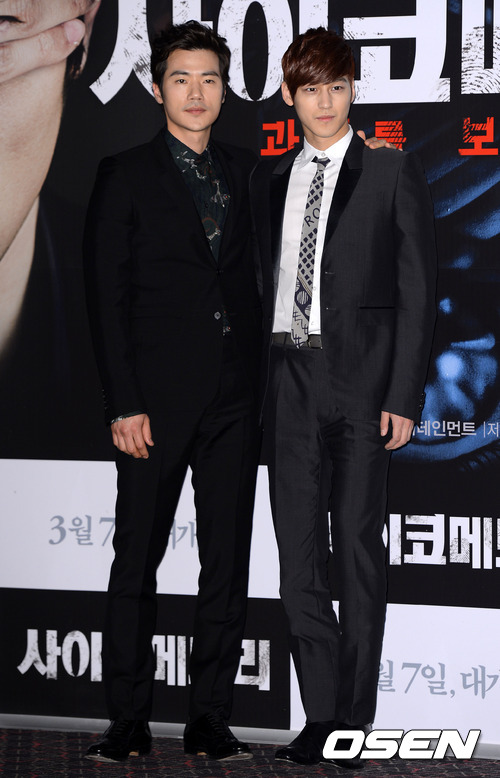 26일 오후 서울 행당동 CGV 왕십리에서 열린 영화 '사이코메트리'(감독 권호영) 언론시사회에서 배우 김강우와 김범이 포토타임을 갖고 있다.