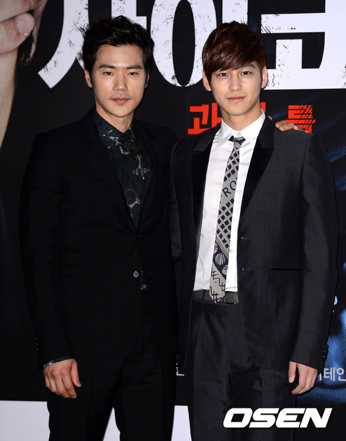 26일 오후 서울 행당동 CGV 왕십리에서 열린 영화 '사이코메트리'(감독 권호영) 언론시사회에서 배우 김강우와 김범이 포토타임을 갖고 있다.