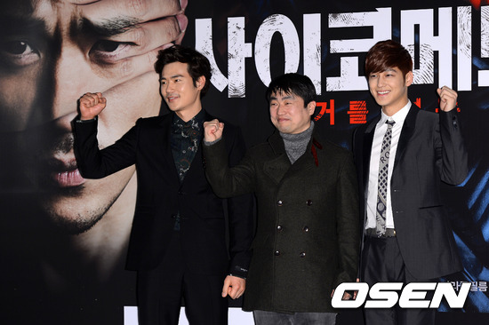 26일 오후 서울 행당동 CGV 왕십리에서 열린 영화 '사이코메트리'(감독 권호영) 언론시사회에서 권호영 감독과 배우 김강우, 김범이 포토타임을 갖고 있다.