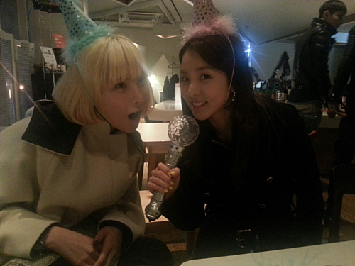 사진 속에는 금발의 거미와 장난스런 표정의 산다라박이 고깔 모자를 쓴 채 카메라를 응시한 모습이다. 이들은 이날 CL의 생일을 맞아 이같은 사진을 찍어 게재했다.