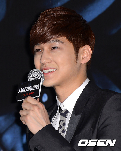 26일 오후 서울 행당동 CGV 왕십리에서 열린 영화 '사이코메트리'(감독 권호영) 언론시사회에서 배우 김범이 취재진의 질문에 답을 하고 있다.