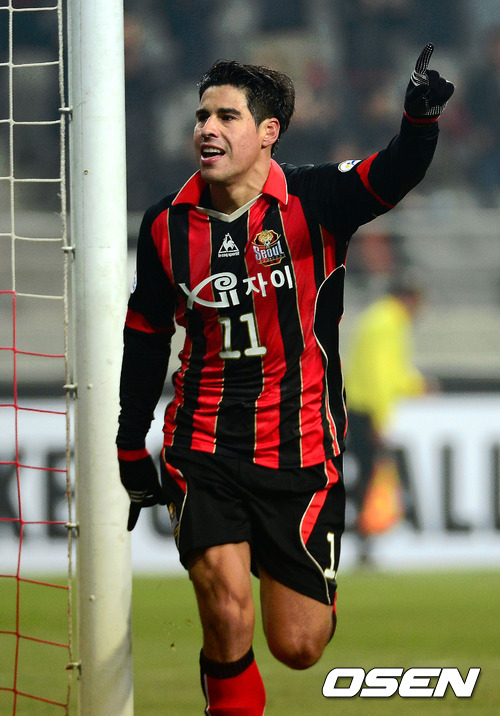 26일 오후 서울월드컵경기장에서 열린 '2013 아시아축구연맹(AFC) 챔피언스리그 조별리그 1차전' FC 서울과 장쑤 순톈의 경기 후반 FC서울 몰리나가 추가골을 넣고 기뻐하고 있다.