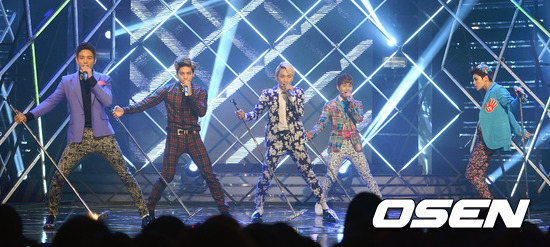 27일 서울 유니클로 악스홀에서 진행된 MBC MUSIC '쇼 챔피언'에서 샤이니가 멋진무대를 선보이고 있다.