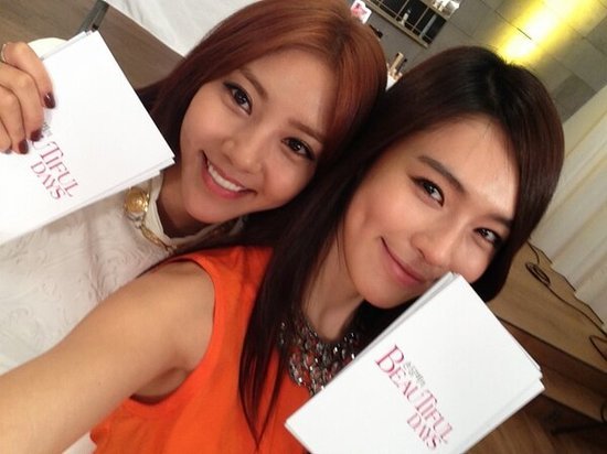 가수 손담비와 가희가 공동으로 뷰티 프로그램의 MC로 발탁된 것을 기념해 인증샷을 찍었다.