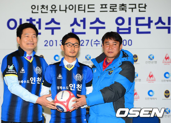 27일 오후 인천 남동구 인천광역시청 로비에서 인천유나이티드 프로축구단 이천수 선수 입단식이 열렸다.