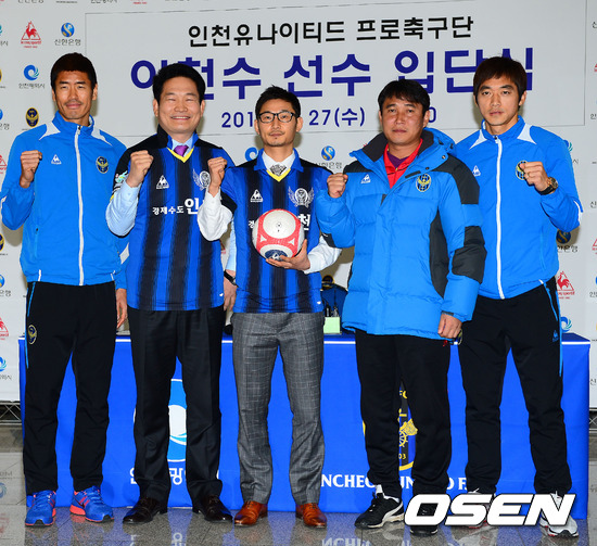 27일 오후 인천 남동구 인천광역시청 로비에서 인천유나이티드 프로축구단 이천수 선수 입단식이 열렸다.