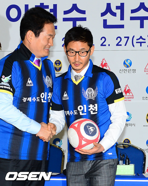 27일 오후 인천 남동구 인천광역시청 로비에서 인천유나이티드 프로축구단 이천수 선수 입단식이 열렸다.