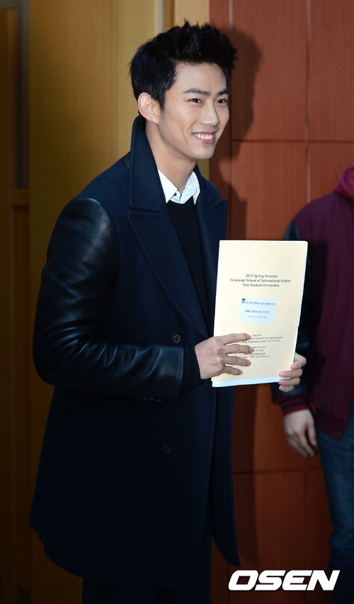 27일 오후 서울 안암동 고려대학교 국제대학원에서 열린 신입생 오리엔테이션에서 그룹 2PM의 택연이 대학원에 합격했다.