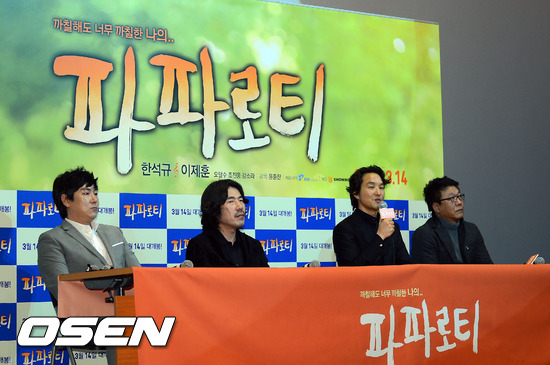 27일 오후 서울 코엑스 메가박스에서 진행된 '파파로티(윤종찬 감독) 언론배급시사회'에서 한석규가 취재진의 질문에 답을 하고 있다.