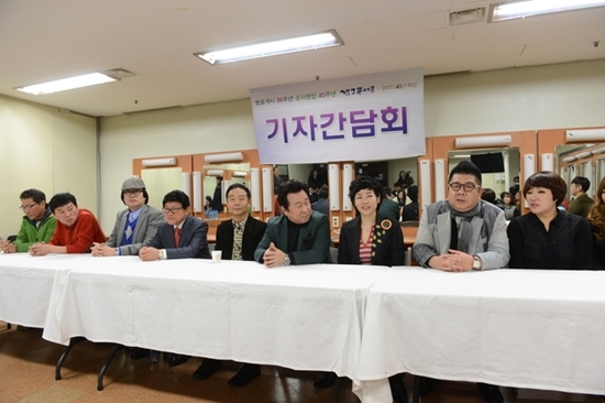 KBS 공사 창립 40주년을 기념해 기획된 ‘개그콘서트-코미디 40년’ 특집이 27일 서울 여의도동 KBS 신관에서 기자간담회를 갖고 강력한 웃음을 예고했다. 이날 개그맨 임하룡, 이경래, 최양락, 김학래, 이봉원, 오재미, 심현섭, 김대희, 개그우먼 김미화, 김현숙, 서수민 CP 등이 참석해 자리를 빛냈다.