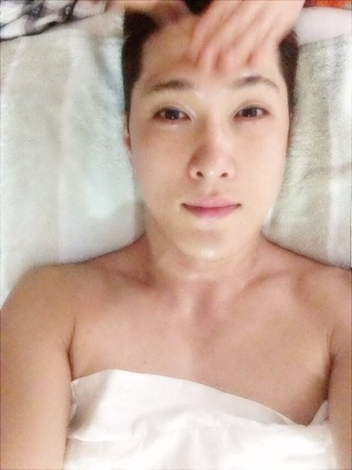 사진 속 김태우는 상의를 벗은 채 경락 마사지를 받으며 카메라를 응시하고 있다. 깨끗한 피부와 깔끔하게 정리된 머리 등의 활동 당시의 모습과는 조금 달라 눈길을 끈다.