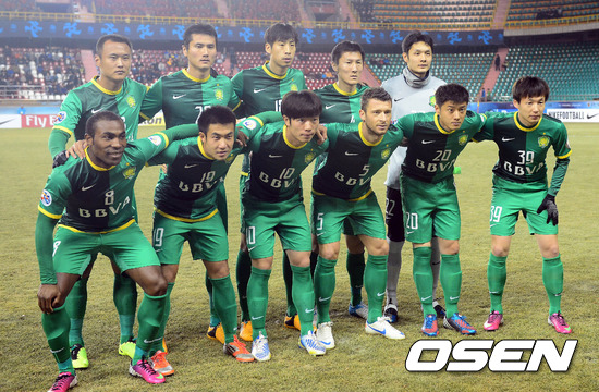 27일 오후 경북 포항시 포항 스틸야드에서 열린 '2013 아시아축구연맹(AFC) 챔피언스리그 조별리그 1차전' 포항 스틸러스와 베이징 궈안의 경기 시작 전 베이징 선수들이 기념촬영을 하고 있다.
