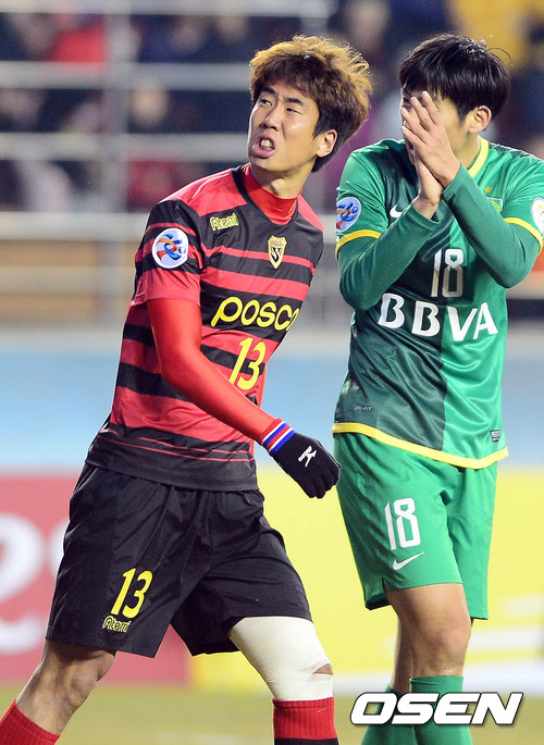 27일 오후 경북 포항시 포항 스틸야드에서 열린 '2013 아시아축구연맹(AFC) 챔피언스리그 조별리그 1차전' 포항 스틸러스와 베이징 궈안의 경기 후반 김원일이 골 기회를 놓친 후 아쉬워하고 있다.
