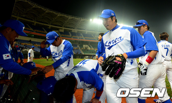 7회초 수비를 마친 대표팀 유원상이 아쉬운 표정으로 더그아웃으로 향하고 있다./jpnews@osen.co.kr