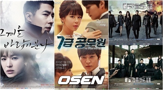 지상파 수목드라마가 3% 내 시청률 격차라는 박빙 승부를 이어가며 승기를 잡기 위한 경쟁이 이어지고 있다. 그 중 SBS ‘그 겨울, 바람이 분다’가 멀찌감치 1위로 치고 나간 가운데, KBS 2TV ‘아이리스2’와 MBC ‘7급공무원’ 사이의 2,3위 다툼이 치열하게 펼쳐지고 있다.