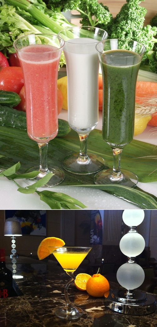 롯데호텔서울의 '힐링주스'(위)와 롯데호텔제주의 '한라티니'.