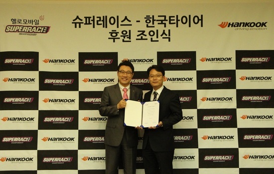 한국타이어와 슈퍼레이스는 28일 서울 한국타이어 사옥 18층에서 2013년 ‘GT 클래스’ 오피셜 타이어와 ‘벤투스 클래스’ 네이밍과 오피셜 타이어 후원 조인식을 가진다고 밝혔다.