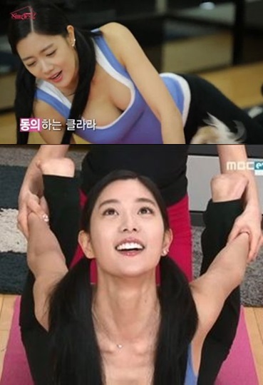이날 클라라는 타이트한 민소매 의상으로 요가를 해 글래머러스한 몸매가 그대로 드러나 눈길을 끌었다. 클라라는 "허리 라인이 들어가고 힙업을 할 수 있는 동작을 배우고 싶다"며 요가를 해 내내 명품 몸매를 과시했다.