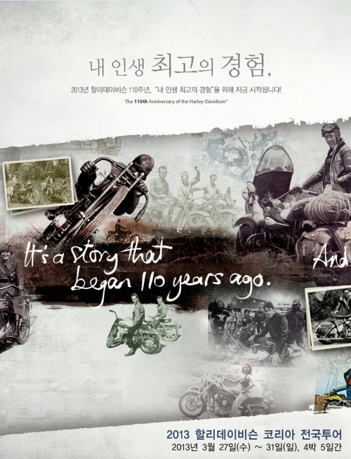할리데이비슨 코리아가 2013년 브랜드 탄생 110주년을 기념해 3월 27일부터 31일까지 4박 5일간 모터사이클 브랜드 최초로 전국 투어를 한다고 28일 밝혔다.