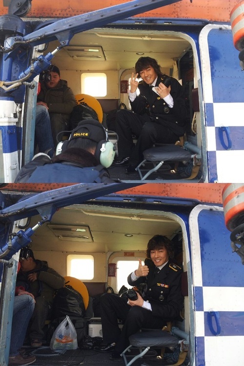 가수 김장훈이 28일 오전 해양경찰헬기를 타고 동해에서 독도로 출발했다.