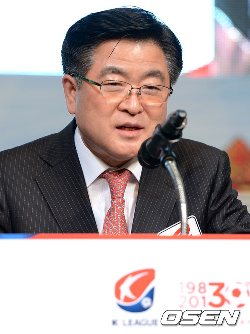28일 오후 서울 홍은동 그랜드힐튼호텔 그랜드볼룸에서 열린 '2013 K리그 클래식 미디어데이'에서 권오갑 한국프로축구연맹 총재가 인사말을 하고 있다.