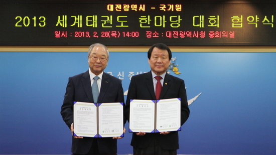 국기원(원장 강원식)은 ‘2013 세계태권도한마당(이하 한마당)’ 의 성공적인 개최를 위해 대전광역시(시장 염홍철)와 업무협약을 체결했다.
