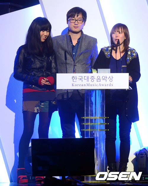 28일 오후 서울 광장동 유니클로 악스홀에서 열린 '제10회 한국대중음악상' 시상식에서 '올해의 음반'을 수상한 3호선 버터플라이가 수상 소감을 말하고 있다.