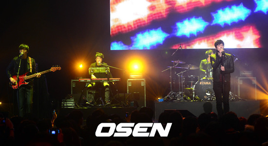 28일 오후 서울 광장동 유니클로 악스홀에서 열린 '제10회 한국대중음악상' 시상식에서 장기하와 얼굴들이 공연을 펼치고 있다.