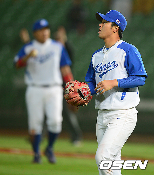 8회초 1사 1루에서 대표팀 최정이 내야타구를 잡아 1루로 러닝스로우하고 있다. 하지만 1루 악송구로 연결되며 아쉬워하고 있다./jpnews@osen.co.kr