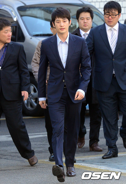 1일 오전 성폭행 혐의로 피소된 배우 박시후가 경찰 조사를 위해 서울 서부경찰서에 출두하고 있다.