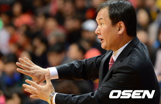 1일 오후 경기 고양체육관에서 열린 KB 국민카드 2012-2013 프로농구 고양 오리온스와 울산 모비스의 경기, 4쿼터 모비스 유재학 감독이 선수들에게 작전을 지시하고 있다.