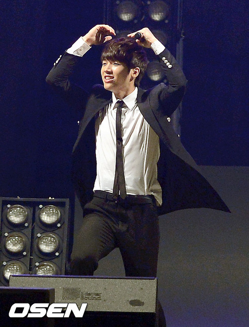 1일 오후 서울 올림픽공원 체조경기장에서 열린 '2013 인피니트 무한대집회'에서 인피니트 멤버 남우현이 팬들을 향해 하트를 날리고 있다.