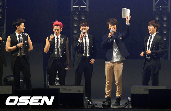 1일 오후 서울 올림픽공원 체조경기장에서 열린 '2013 인피니트 무한대집회'에서 MC곽정욱이 팬들을 향해 인사하고 있다.