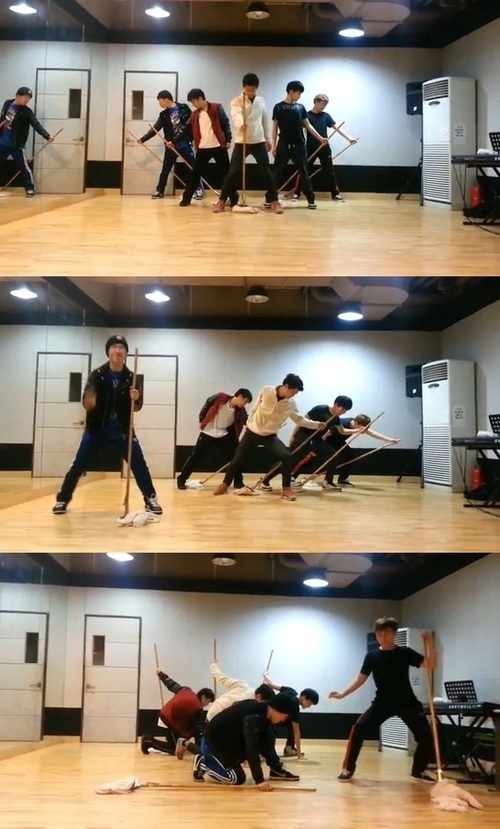 해당 영상에는 샤이니가 선보인 스탠드 마이크 대신 다섯명의 청년들이 밀대를 이용해 '드림걸'을 선보이는모습이 담겼다.