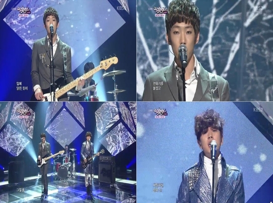 이날 눈꽃이 날리는 배경 앞에 회색빛의 의상을 입고 무대에 선 더넛츠는 감성적인 멜로디에 맞춰 록밴드답게 뛰어난 가창력을 산보였다.
