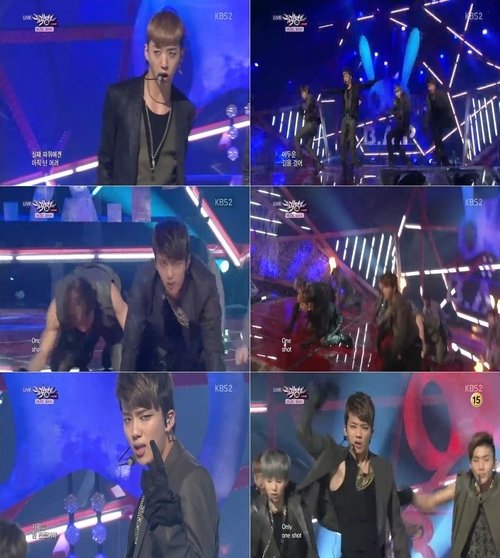 B.A.P는 1일 오후 방송된 KBS 2TV '뮤직뱅크'에 출연해 신곡 '원샷(ONE SHOT)'의 무대를 꾸몄다.