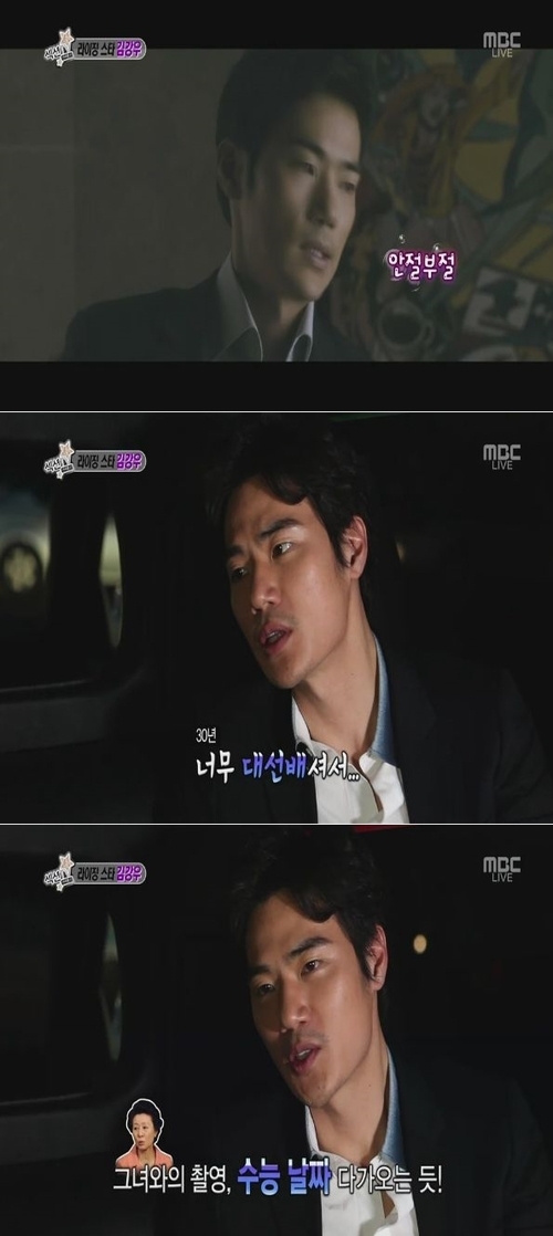 배우 김강우가 영화 '돈의 맛'에서 대선배 윤여정과의 베드신에 대해 "수능날짜를 기다리는 것 같았다"고 밝혔다.