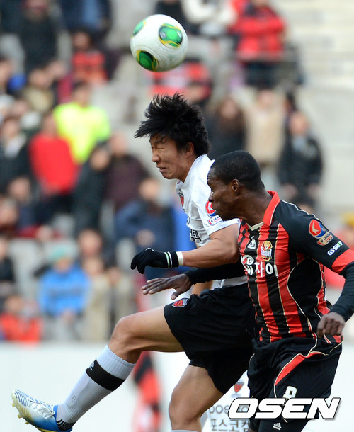 후반전 포항 고무열과 서울 아디가 공중볼 다툼을 하고 있다./sunday@osen.co.kr