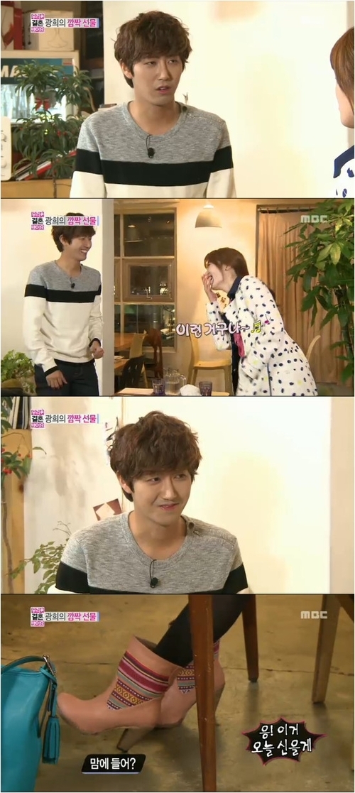 그런데 반전이 펼쳐졌다. 식당에 오는 길에 한선화가 무심코 예쁘다고 했던 부츠를 선물한 것. 황광희는 제작진도 모르게 잠시 촬영이 쉬는 사이 선물을 사왔다.
