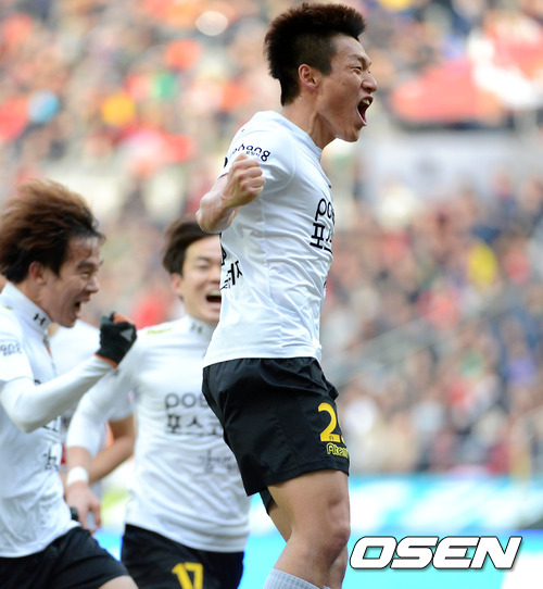 포항 스틸러스는 2일 서울월드컵경기장에서 열린 현대오일뱅크 K리그 클래식 2013 개막전 FC서울과 원정 경기서 후반 38분 터진 이명주의 천금같은 동점골에 힘입어 2-2 무승부를 거뒀다. 포항은 이날 무승부로 비록 서울 원정 징크스(9경기 무승)를 깨는데는 실패했지만, 1-2로 끌려가던 후반 총공세 속에서 터진 지난 시즌 신인왕의 벼락골로 패배를 피하게 됐다.