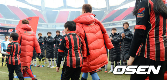 경기에 앞서 작년 챔피언 서울 선수들의 입장때 포항 선수들이 예우 세리머니를 하고 있다./sunday@osen.co.kr